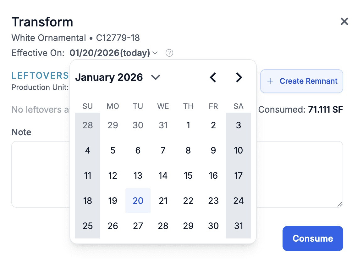 You can now set the date of an inventory operation. The default is today, but this allows you to make retroactive adjustments when needed.